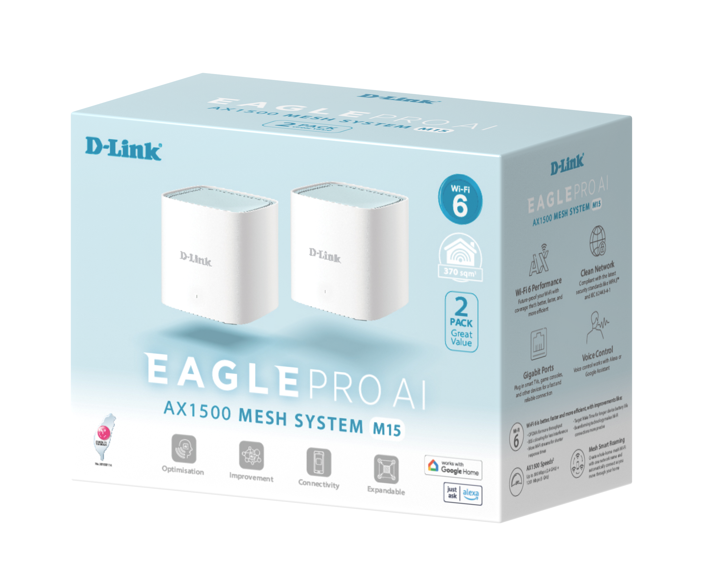 D-Link AX1500 Wi-Fi 6 AI Mesh Router M15/LLA2 – 2-Pack