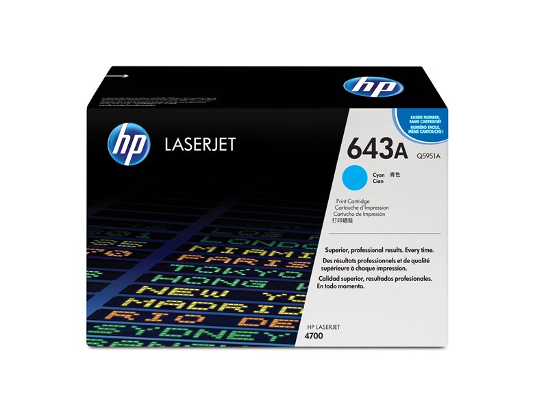 | Product Description | HP 643A - cyan - original - LaserJet - toner cartridge (Q5951A) |